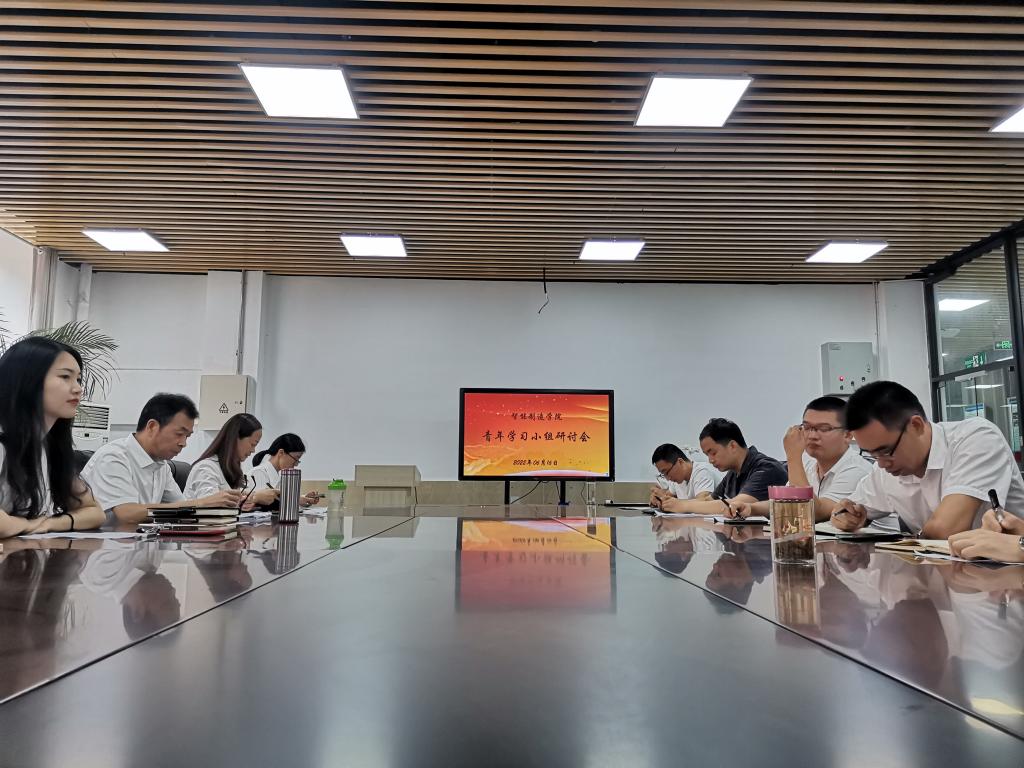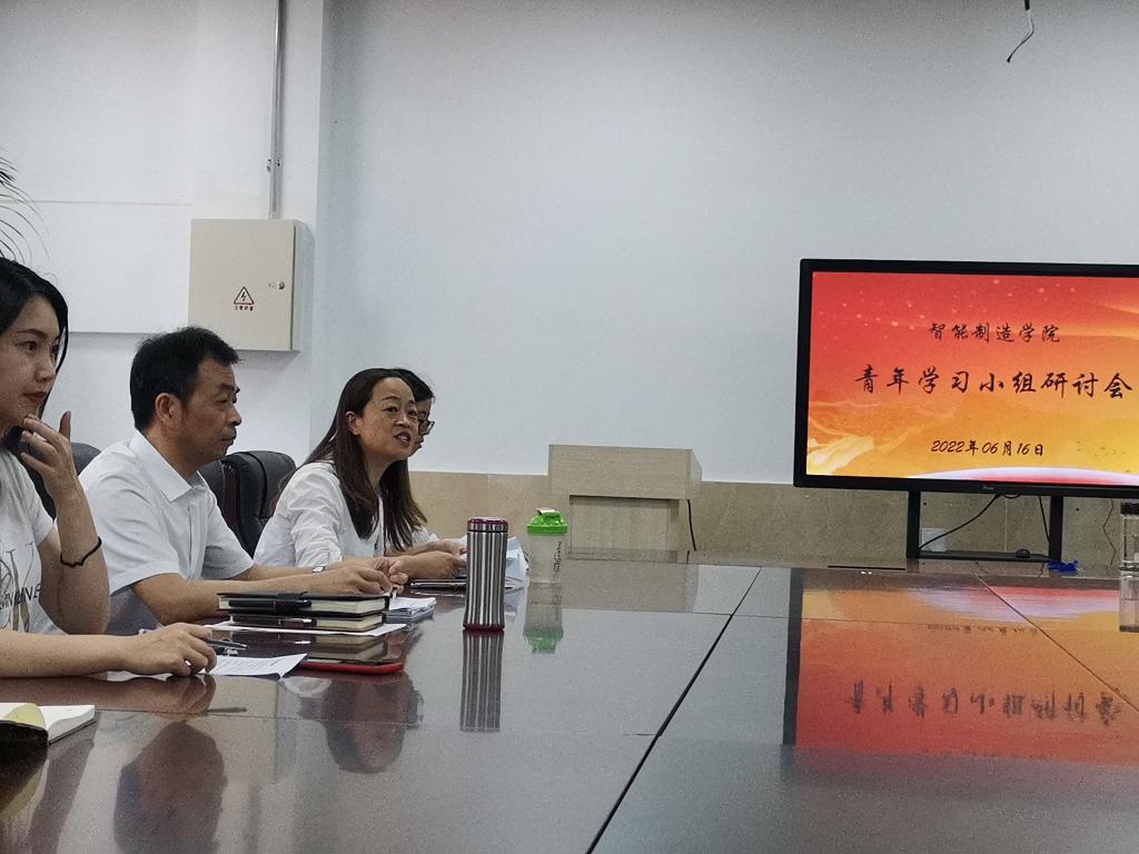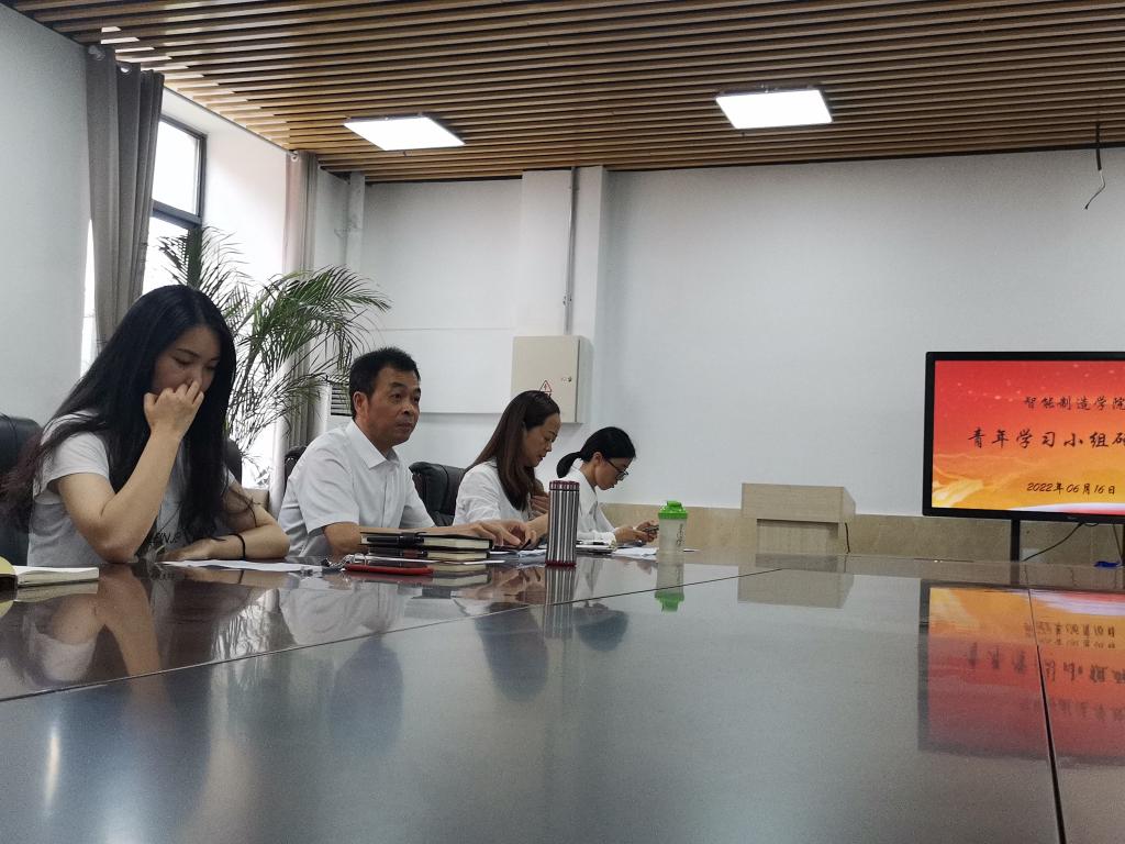 2022年6月16日,智能制造学院青年教师学习小组研讨会在匠心楼306举行。党总支书记杨立林及青年教师学习小组成员参与会议。
