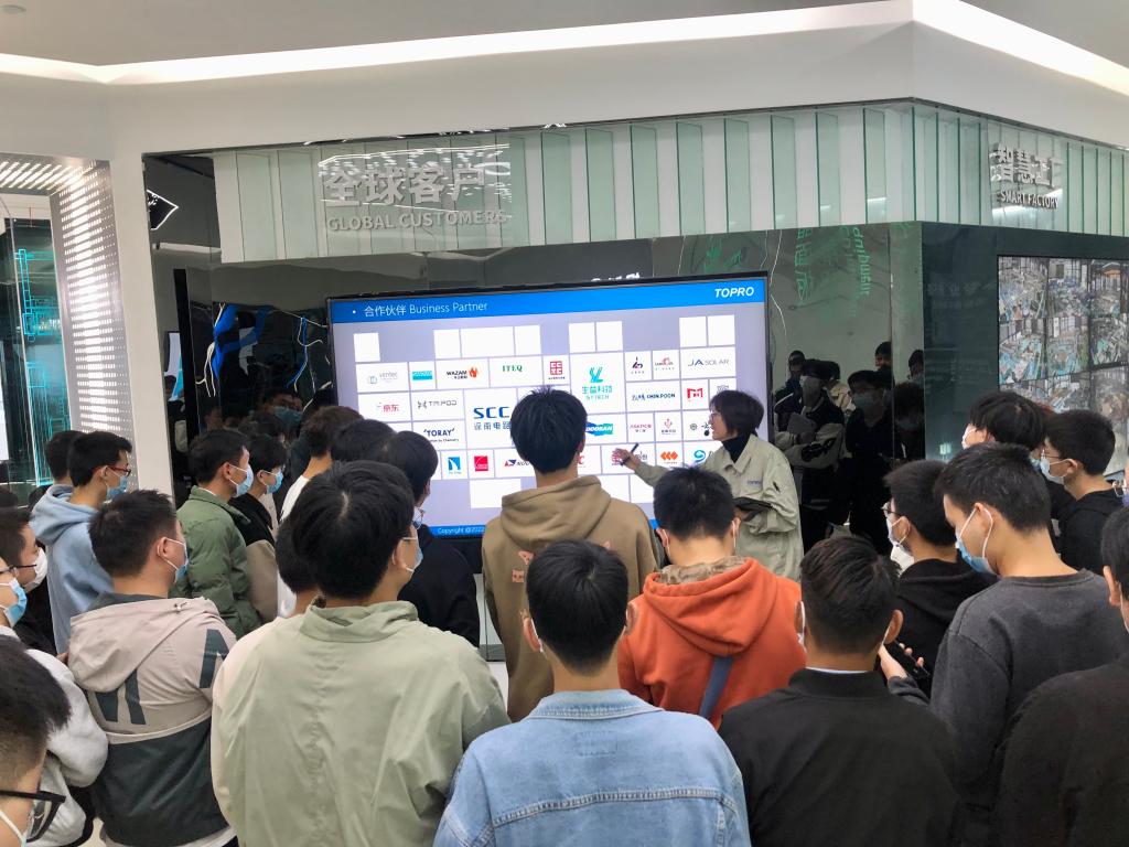 为了让学生直观感受企业文化,2022年11月4日,党总支副书记向李及订单班辅导员唐思老师组织近50名意向学生走访、参观了托璞勒科技。参观中,同学们对企业的文化、基本情况、未来发展方向、企业岗位需求及薪资待遇等情况有了更加清晰的认识。同时,校企双方就大学生实习就业、校企合作、劳动实践基地建设等话题展开深入交流。