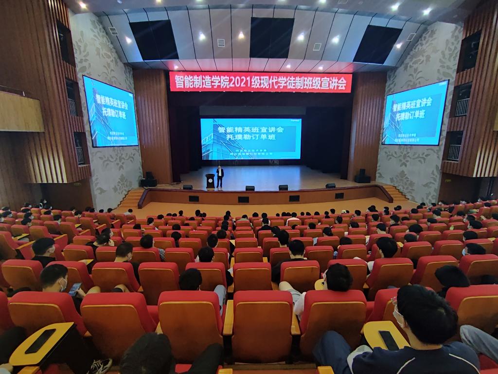为深化校企合作,积极探索现代学徒制人才培养模式,提升人才培养质量,增强专业品牌影响力,2022年11月2日,智能制造学院携手四川托璞勒科技有限公司开展2021级智能精英班(托璞勒订单班)宣讲活动。智能制造学院副院长陈德航主持宣讲活动,党总支副书记向李及2021级全体学生参加活动。