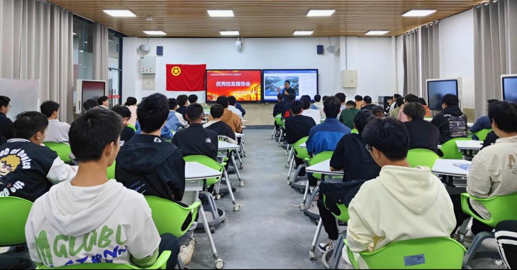 为传递优秀学习榜样力量,加强学风建设,引导学生树立远大志向,合理规划大学生活,2023年11月10日,智能制造学院邀请优秀校友谭周胜在匠心楼305举行优秀校友报告会。学生科相关负责老师、2022级托璞勒订单班学生及2023级学生代表共计100余人聆听了分享。