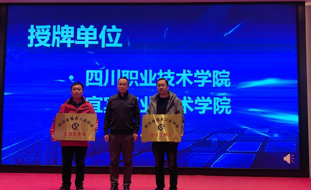 本次会员大会举行了协会制度修订草案的审议,并就成立四川省模具工业协会模具集中区域分站设立进行了说明,协会在四川省内选择遂宁和宜宾设立协会分站,进一步加强对两个地方的模具行业联系与指导,智能制造学院为进一步加强与行业、企业交流合作,整合资源,纵深推进产教融合,开展校企合作,经过积极争取,成功将协会分站纳入我校落户。会上由本届协会理事长单位成都宏明双新科技股份有限公司董事长唐春为我校授牌。