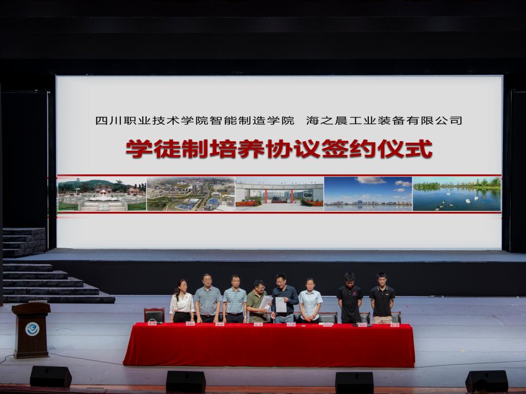 智能制造学院召开校企共育动员会,并与海之晨工业装备有限公司签订校企合作协议,旨在贯彻党和国家的科教兴国方针,推动我国高等职业技术教育的发展,通过中国特色学徒制人才培养模式,校企共同培养一大批能适应社会需要、素质高、技能强的高素质技能型人才。