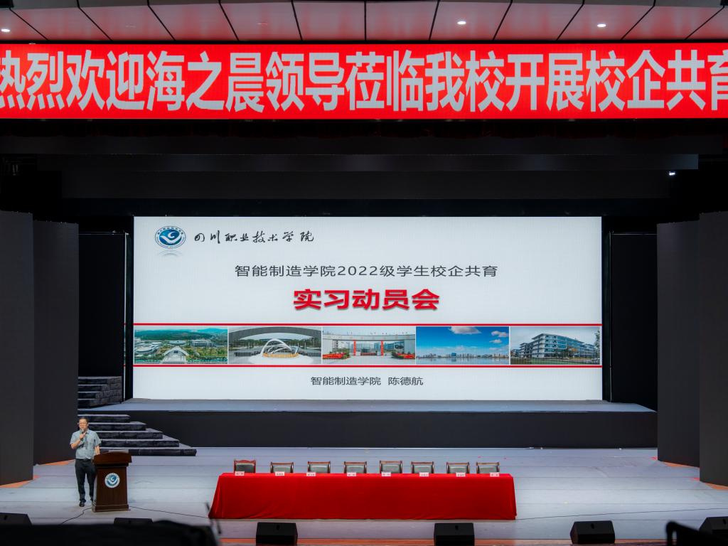 智能制造学院院长祝林代表学院与海之晨公司签订了校企合作协议,副院长陈德航就校企共育作了动员讲话。陈德航从学校为什么要安排校企共育实习、怎样去参加实习、实习中应该注意什么等三个方面作了讲话,并就校企共育与顶岗实习阶段的相关管理要求作了强调。