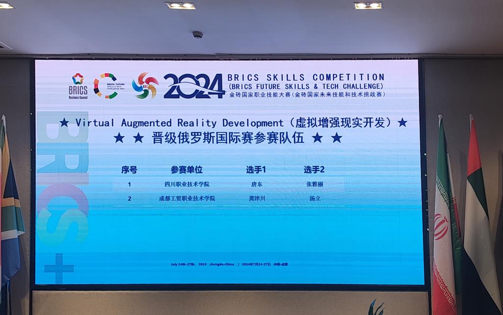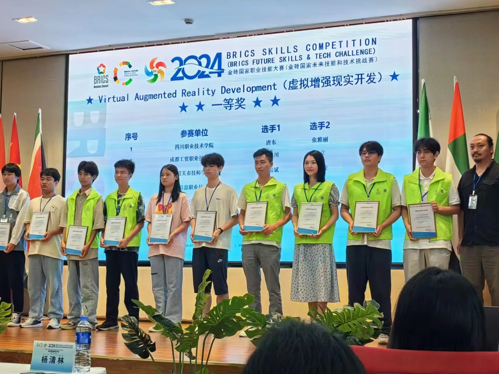 7月24日-7月27日,2024金砖国家职业技能大赛(金砖国家未来技能和技术挑战赛)虚拟增强现实开发赛项全国选拔赛暨国内决赛在成都市技师学院举行,来自全国24个省市自治区、36所职业院校的参赛选手同台竞技。我校智能制造学院选派的唐东、张雅丽老师团队荣获全国第一名,指导教师祝林、陈德航荣获优秀指导专家。同时,学院唐东、张雅丽老师组成的参赛队将代表中国赴俄罗斯主赛区参加喀山“超级杯”国际总决赛。