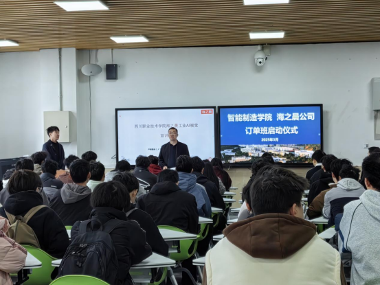 启动仪式上,学院领导对海之晨公司代表的到来表示热烈欢迎,并指出校企合作对学院人才培养的重要意义。此次合作不仅能提升学生的实践能力,还能使学院教学更贴合市场需求,培养出更多高素质技能型人才。海之晨公司代表详细介绍了公司概况、发展前景以及订单班的培养目标、课程设置和就业方向,让学生们对未来职业发展有了清晰认识。学院教师代表在发言中鼓励学生珍惜机会,努力学习专业知识和技能,积极参与实践,为未来职业发展打下坚实基础。