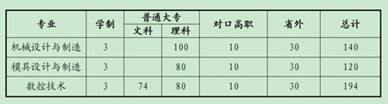 机械工程系2009年普通大专省外分专业招生计划一览表