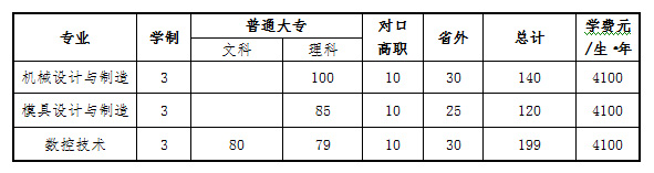 机械工程系2010年普通大专省外分专业招生计划一览表