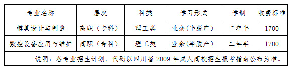 机械工程系2010年成人大专招生专业一览表
