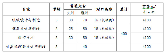 机械工程系2011年普通大专省外分专业招生计划一览表