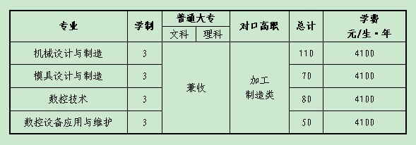 机械工程系2012年普通大专招生专业和计划一览表