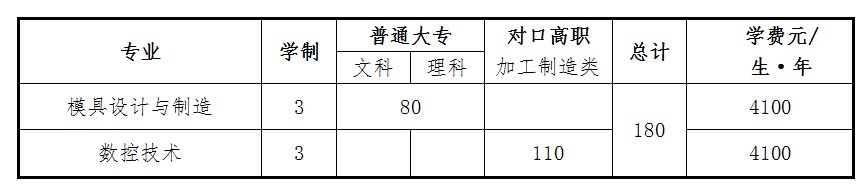 机械工程系2017年“单独招生”对口高职类、普通类招生专业与计划一览表