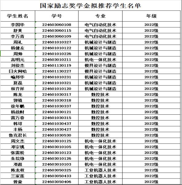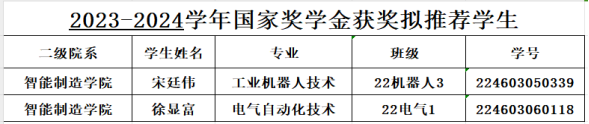 根据《四川职业技术学院国家奖助学金评审办法》《关于做好2024学年国家奖助学金评审工作的通知》等文件,经过学生本人申请、专业推荐、学院评选,现将智能制造学院2023-2024学年国家奖学金及国家励志奖学金拟推荐学生名单予以公示。