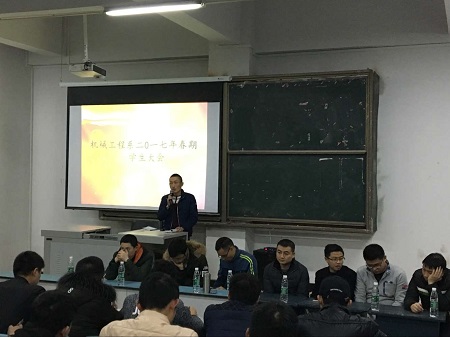 为了进一步开展好本系的学生工作,3月13日晚7.30,在5教311召开了机械工程系2017春季学生大会,会议主要提出了这学期出现的问题及改正方针,同时也对本学期的工作进行了讨论。钱桂名老师和16级各班的班主任携同16级全体同学们参与本次大会。