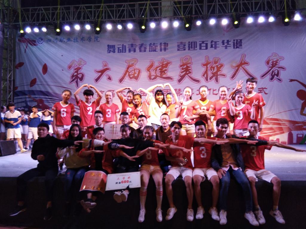 2017年11月1日晚7:30分,四川职业技术学院第六届校园健美操大赛在学校体育馆成功举办。莅临本次大赛的嘉宾有学院及各系部党总支书记、主任、团总支书记、部分辅导员、班主任以及2500名大一新生代表。