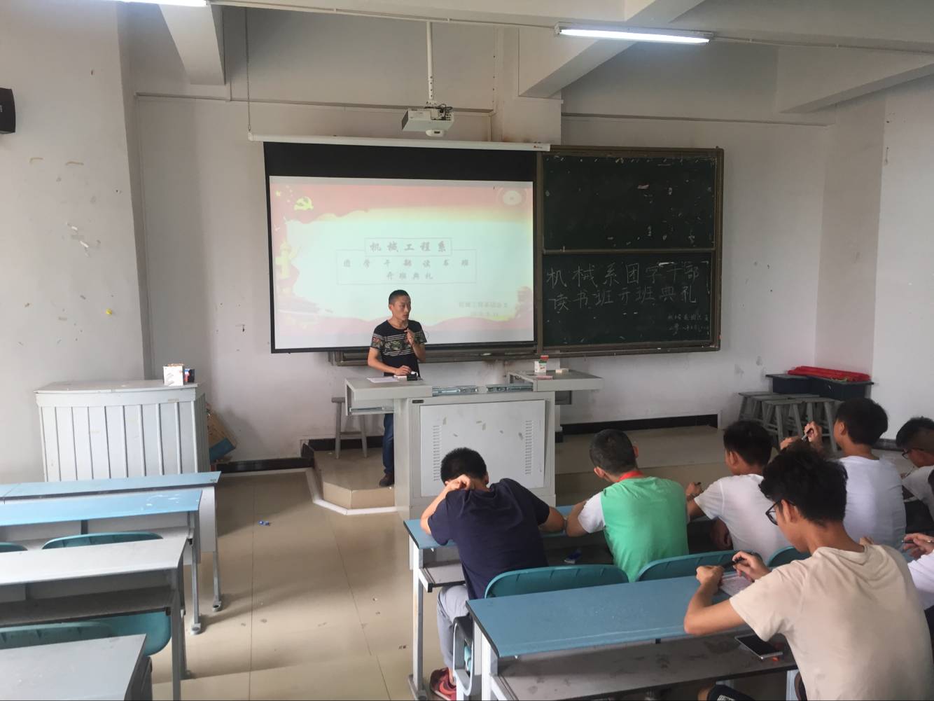 2018年5月31日星期四中午十二点五十,我系开展了机械工程系团学干部读书班开班典礼,参加本次活动的有机械工程系团总支书记钱桂明老师,16级学生会主席团以及16级学生会干部,16、17级各班班长团支部书记。