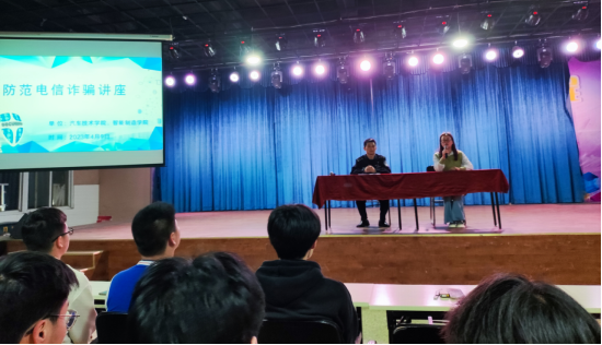 为深入贯彻习近平总书记总体国家安全观,落实学校相关工作安排,进一步加强防范电信网络诈骗工作,切实做好学院反电诈宣传教育,坚决遏制电信网络诈骗多发高发态势,2023年4月9日晚,智能制造学院与汽车技术学院在大学生活动中心举办“防范电信诈骗”主题讲座,智能制造学院党总支副书记向李主持。本次讲座特别邀请了慈音寺派出所文益军警官主讲,共有500余名学生代表参加。