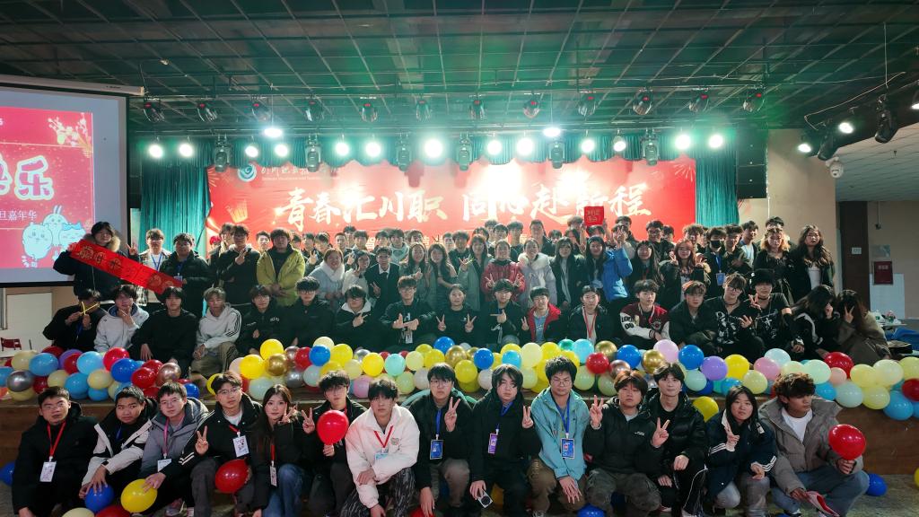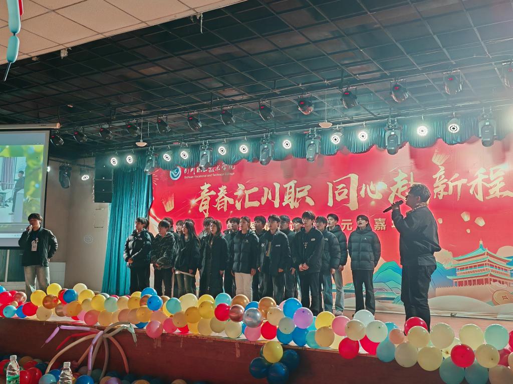 近三小时的盛宴里,青春活力与文化温度交织——写春联、寄时光的传统互动,让文化基因在年轻一代中自然流淌;节目里的家国情怀与人文关怀,更让文化自信成了看得见的青春底色。这场聚会,既展现了川职学子的才艺风采,更以文化为纽带凝聚了师生情谊。晚会尾声,全体演职人员与领导嘉宾合影留念,在温情里定格下属于青春与文化的新年记忆,也带着这份文化底气,奔赴新程。