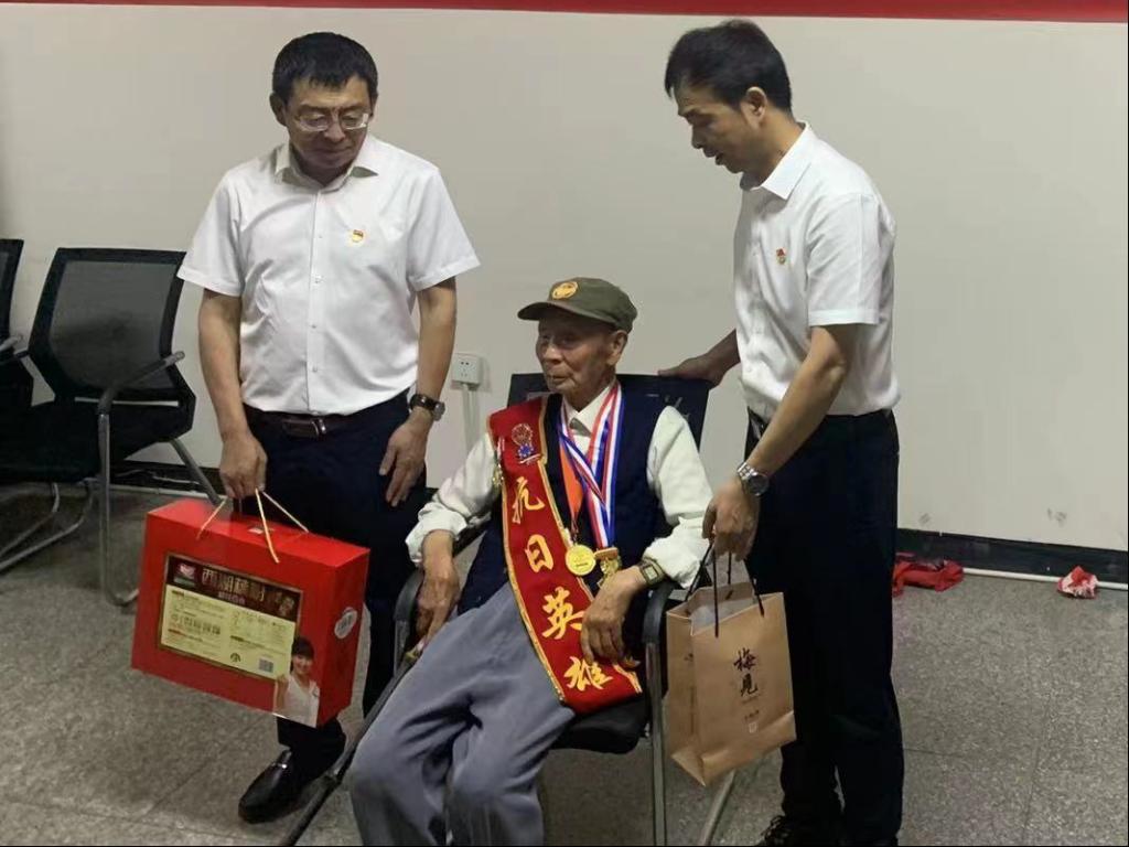 教师支部书记祝林对本次活动进行了总结发言。他号召全体参会人员多向周老等抗战老兵学习,要紧密团结在以习近平同志为核心的党中央周围,不忘初心、牢记使命,在各自的工作岗位上踏实工作、坚守职责,为实现中华民族的伟大复兴的中国梦贡献力量。最后,祝林和党总支书记杨立林为周老送上了慰问品,感谢他为我们争取的和平环境和带来的幸福生活。