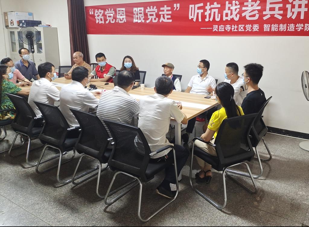 6月23日下午,智能制造学院教师支部联合河东新区灵应寺社区党委开展了“铭党恩、跟党走”听抗战老兵讲故事主题教育活动。活动还邀请了智能制造学院党总支和学生支部全体委员参加。