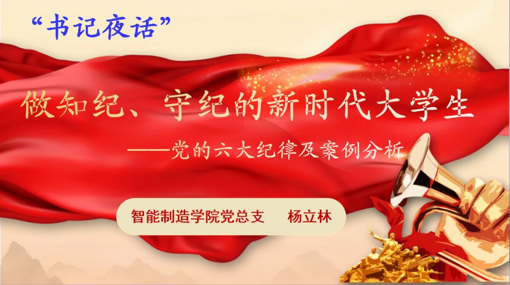 为推动党纪学习教育走深走实,进一步增强学生纪律意识、规矩意识,2024年5月30日,智能制造学院开展“书记夜话”活动。党总支书记杨立林围绕党的六大纪律,以《做知纪、守纪的新时代大学生》为题,通过详实的案例,给全体学生党员、入党积极分子上了一堂理论与实践相结合的生动党课。